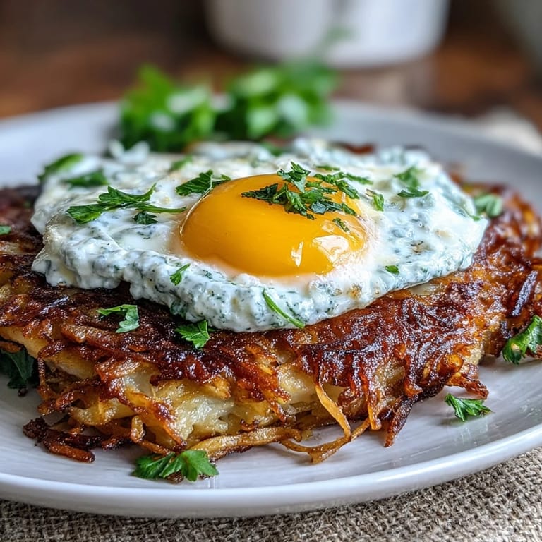 I made this for my sister the first time she visited after moving abroad, and she sat at my counter with her coffee, watching me flip each rösti with the kind of quiet happiness that comes from being fed something warm and homemade. We talked about nothing important while the kitchen filled with the smell of browning onions and crisping edges. She went back for seconds, then thirds, scraping up every bit of harissa yogurt left on her plate. It became the dish I make whenever someone needs comfort that feels a little special.