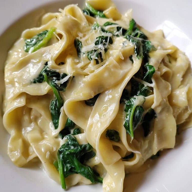 Save There was a Wednesday evening when I had nothing planned and a bag of spinach wilting in the crisper drawer. I boiled noodles, melted butter, and tossed in garlic without measuring anything. The cream went in next, then Parmesan, and suddenly the kitchen smelled like the kind of restaurant I couldn't afford in college. It tasted better than I expected, and I've made it dozens of times since.