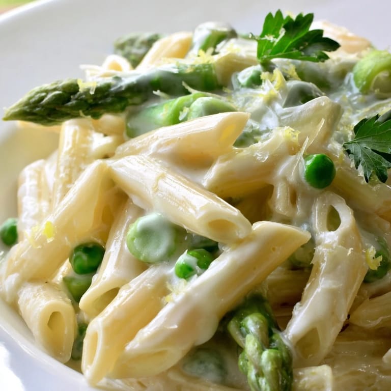Save The first time I made this pasta, it was a Tuesday evening and I had bags of spring vegetables from the farmers market that needed using. I tossed everything together somewhat desperately, but that first bite made me stop in my tracks, the asparagus still crisp, the cream sauce clinging to each penne tube, lemon zest brightening everything up. My roommate walked in, took one sniff of the garlic and cream, and immediately asked if there was enough for two. Now it is the dish I make when I want something that feels special but comes together in the time it takes to boil water.