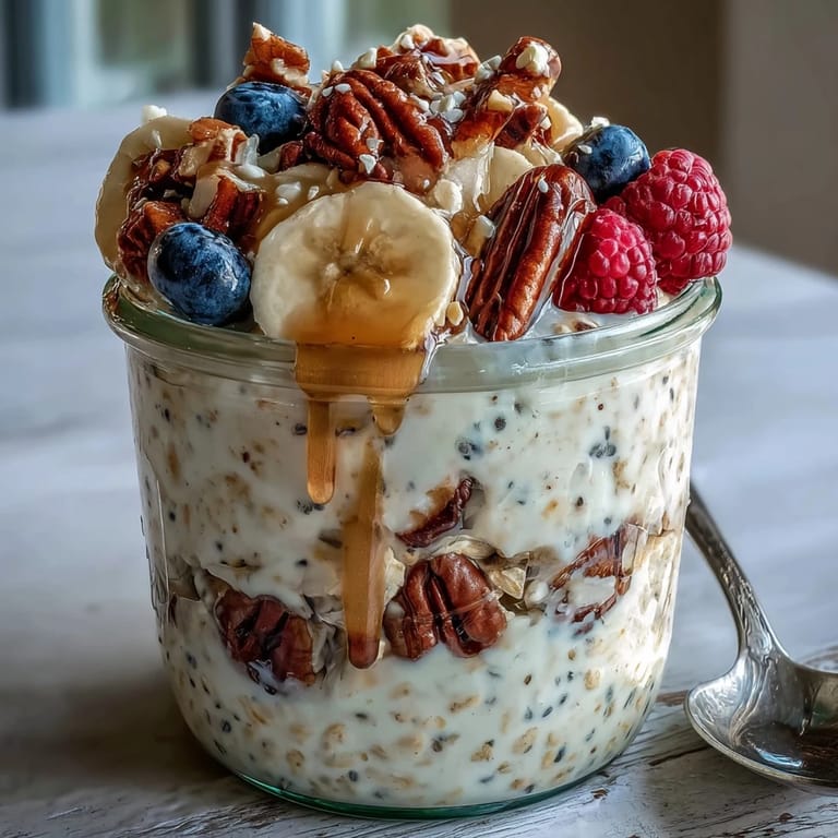 Save There's something wonderfully honest about overnight oats—no pretense, no fussing around at dawn. I discovered them during a stretch of early morning meetings, when my usual routine of brewing coffee and thinking about breakfast had to collapse into something I could actually manage. A friend mentioned she just threw things in a jar the night before, and I remember standing in my kitchen at 10 PM, skeptical but curious, dumping oats and yogurt together like I was conducting some edible science experiment. By morning, the transformation felt like magic.