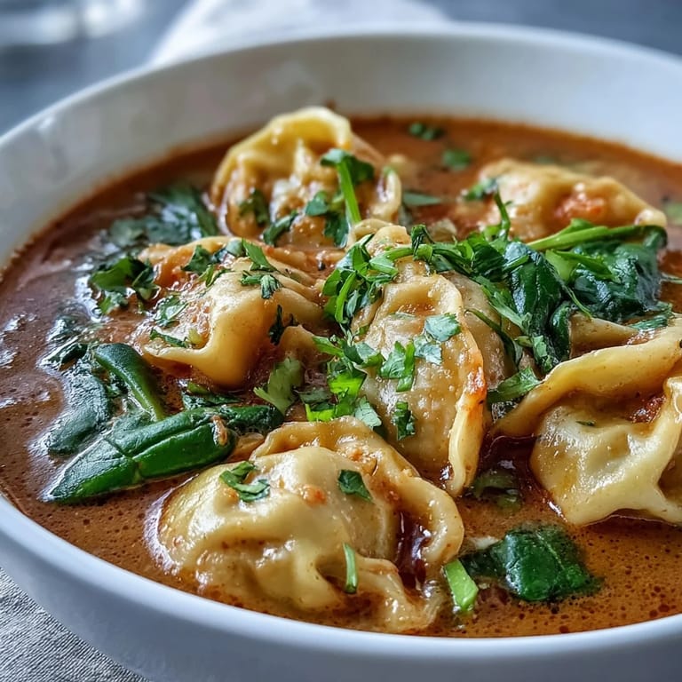 Save There's something about the smell of red curry paste hitting hot oil that makes me stop whatever I'm doing in the kitchen. I discovered this soup on a particularly gray Tuesday when I had twenty minutes before a work call and absolutely nothing in my head for lunch. The frozen wontons in my freezer seemed to wink at me, and suddenly I was building this vibrant, steaming bowl that tasted like it took hours. It became my go-to now whenever I need something that feels both nourishing and a little bit special without the fuss.